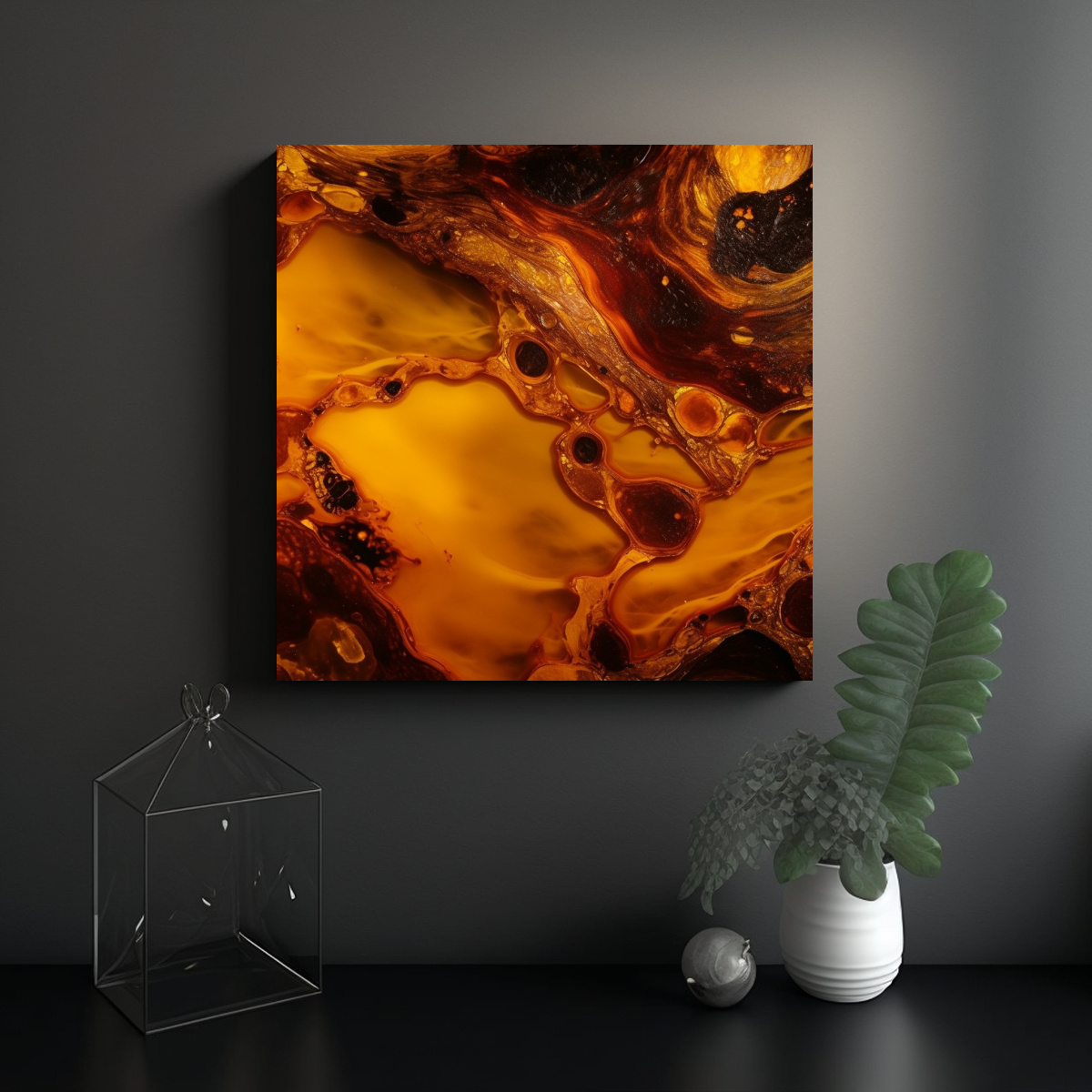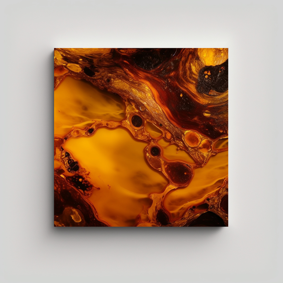 Este cuadro abstracto en amarillo y naranja con luz de fondo se vería espectacular en un ambiente moderno o contemporáneo Colócalo en una pared blanca para que resalte y cree un punto focal vibrante en tu sala de estar o estudio