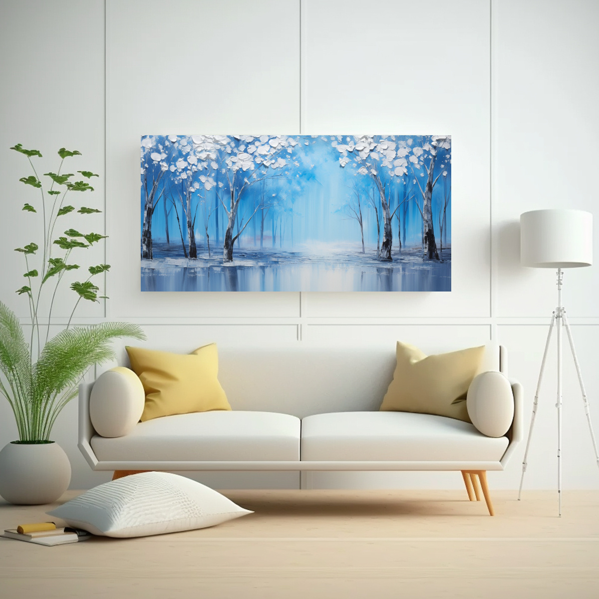 Este cuadro es perfecto para decorar tu sala de estar Colócalo sobre un sofá de color neutro, como blanco o gris, para crear un contraste elegante También puedes combinarlo con cojines en tonos plateados y azules para darle un toque más sofisticado ¡Atrévete a agregar esta hermosa obra de arte a tu hogar y sorprende a todos con tu buen gusto!