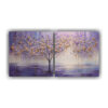 Coloca este cuadro en el centro de tu sala para crear un punto focal y combínalo con muebles en tonos neutros, como gris, plateado y azul marino grisáceo Esto creará un contraste sofisticado y elegante en tu espacio Además, puedes complementar la decoración con elementos dorados y lilas para resaltar los colores del cuadro El resultado será una sala moderna y única, que reflejará tu estilo y personalidad