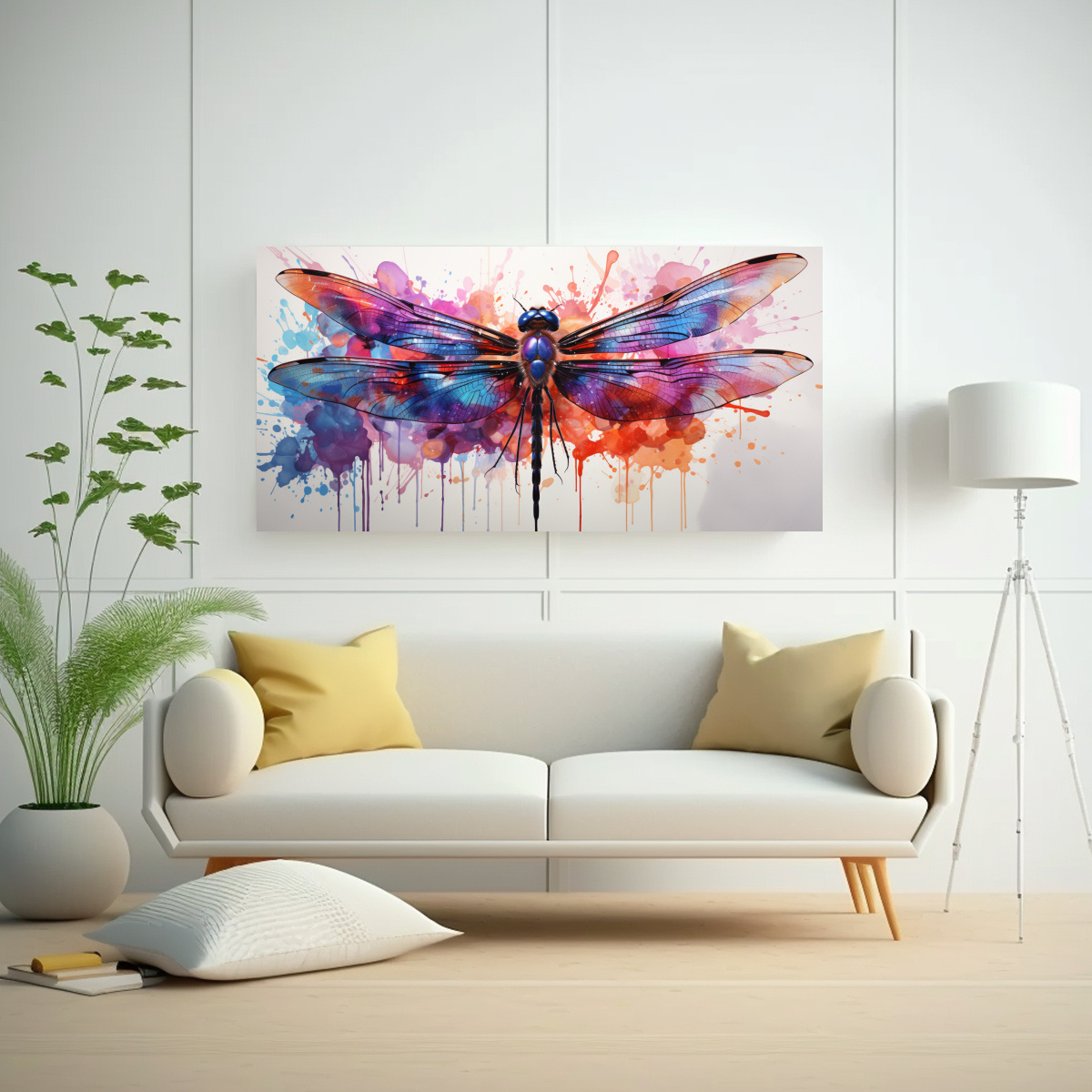 Coloca este hermoso cuadro de Dragonfly en Colores Brillantes y Lavanda en tu sala de estar, sobre un sofá de tonos neutros, para crear un contraste llamativo Combínalo con cojines en colores similares para lograr una armonía visual única