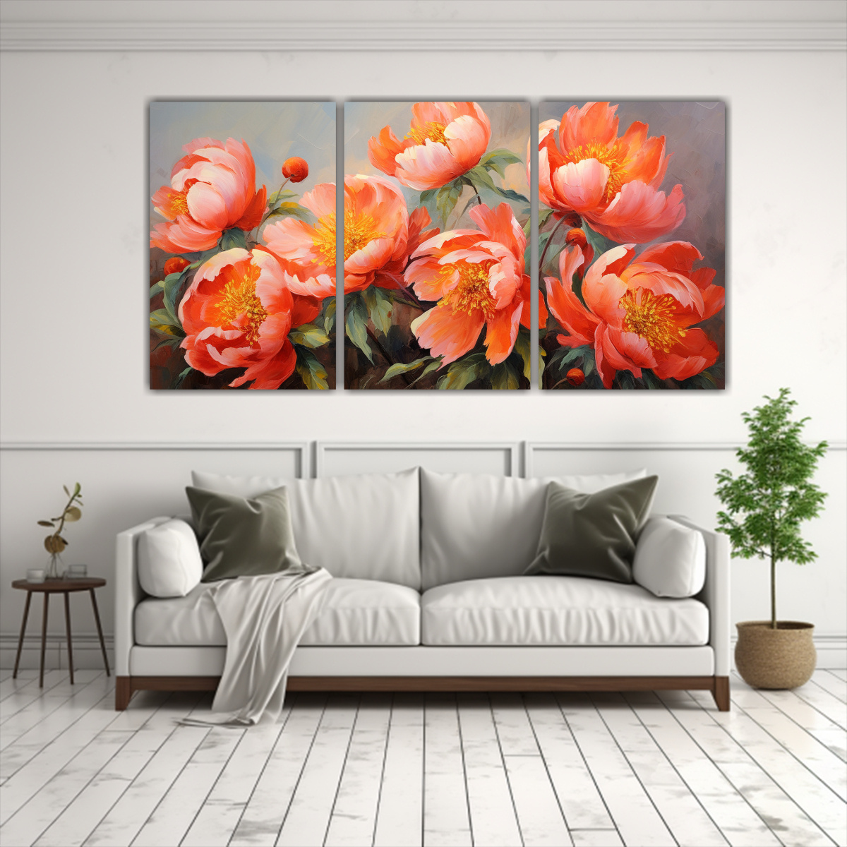 Este cuadro de peonías naranjas en lienzo será el complemento ideal para tu sala de estar Colócalo sobre un mueble en tonos neutros para resaltar los colores vibrantes del cuadro También puedes combinarlo con cojines en tonos cálidos para crear un ambiente acogedor y elegante