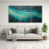Dale un toque único a tus paredes con nuestro Cuadro de Pared en Estilo Puntillismo Luminoso Sus colores turquesa, plateado, azul marino grisaceo, verde azulado, dorado y menta le darán vida a cualquier espacio Impresos en tela de alta calidad con bastidores de madera, nuestros cuadros son una opción elegante y moderna para tu hogar o lugar de trabajo En DecoCuadros, ofrecemos la mejor calidad del mercado a precios asequibles Además, contamos con diseños exclusivos que no encontrarás en ningún otro lugar Realizamos envíos gratis en Santiago y envíos express a regiones, para que puedas disfrutar de tu cuadro rápidamente ¡Decora con estilo y crea ambientes únicos con nuestros cuadros luminosos de puntillismo!