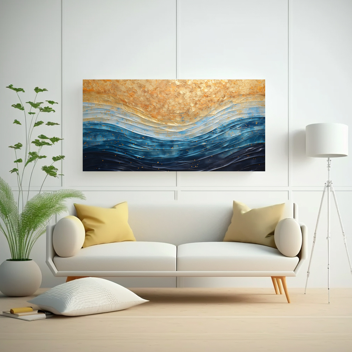 Este cuadro es ideal para agregar un toque de color y armonía a tu sala de estar Colócalo sobre el sofá principal o en una pared vacía para crear un punto focal llamativo Combínalo con cojines y cortinas en tonos similares para lograr una decoración equilibrada y elegante