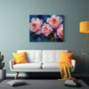 Pintura De Pared Flores Rosas En Azul Arte Impactante