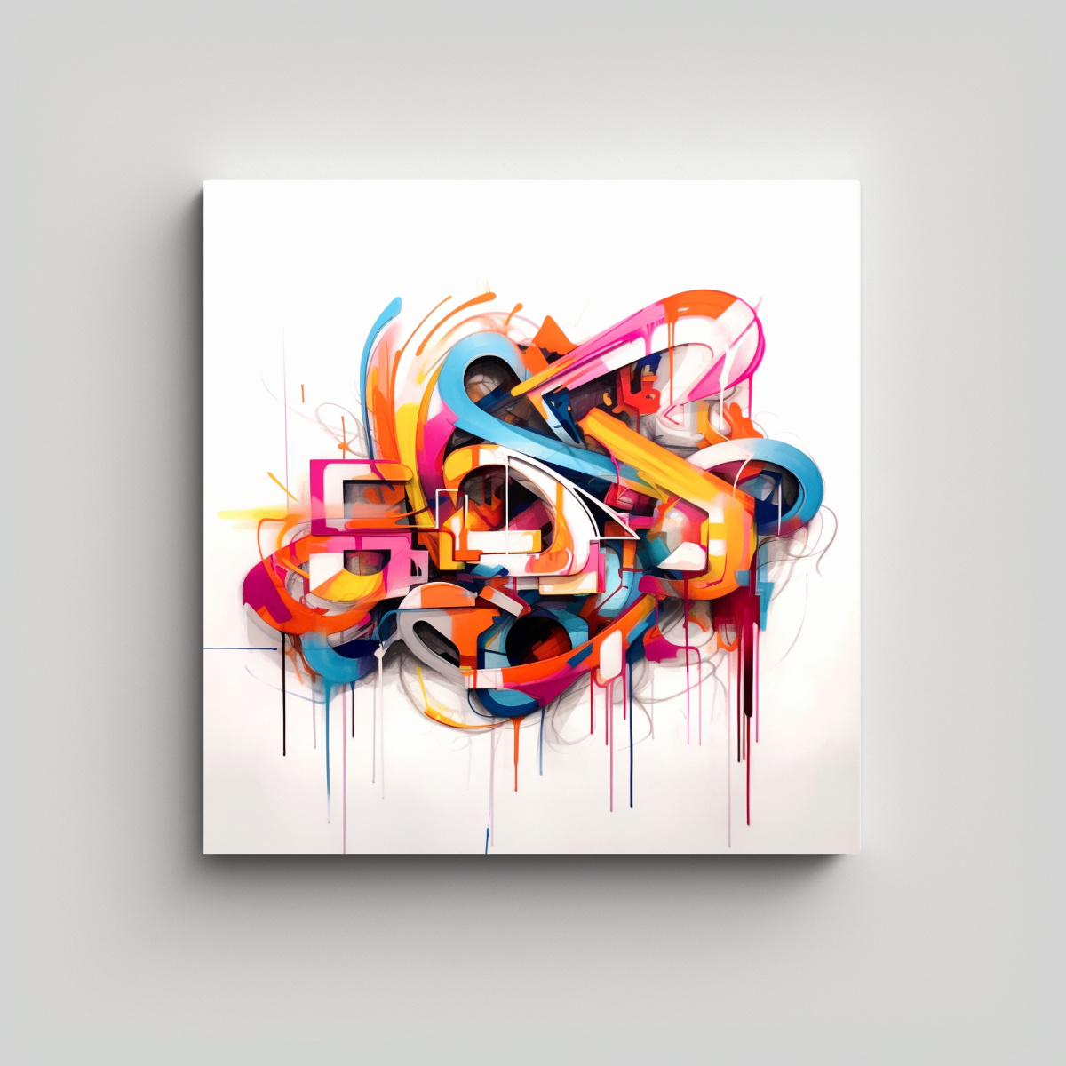 El cuadro Pintura de Pared Graffiti Blanco Inspiración de Tonos es perfecto para darle un toque moderno y colorido a tu hogar Hecho con los colores Carmesí, Azul Marino Grisáceo, Beige, Coral, Turquesa, Lila, Menta, Plateado, Rosado Claro y Aguamarina Diseño exclusivo de DecoCuadros