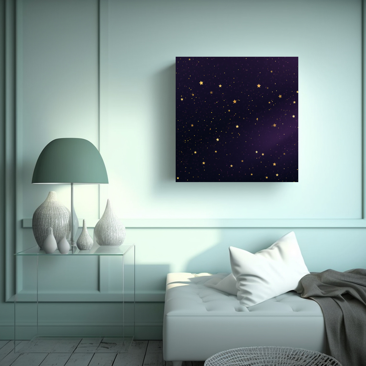 Este cuadro de Pintura de Pared Noche Morada Intensa estilo Clásico sería perfecto para decorar una sala de estar elegante y sofisticada Combínalo con muebles en tonos neutros como el gris o el blanco para resaltar su intensidad y crear un ambiente acogedor y relajante Colócalo en una pared amplia y despejada para que se convierta en el punto focal de la habitación ¡Será el detalle que hará que tu sala de estar destaque!