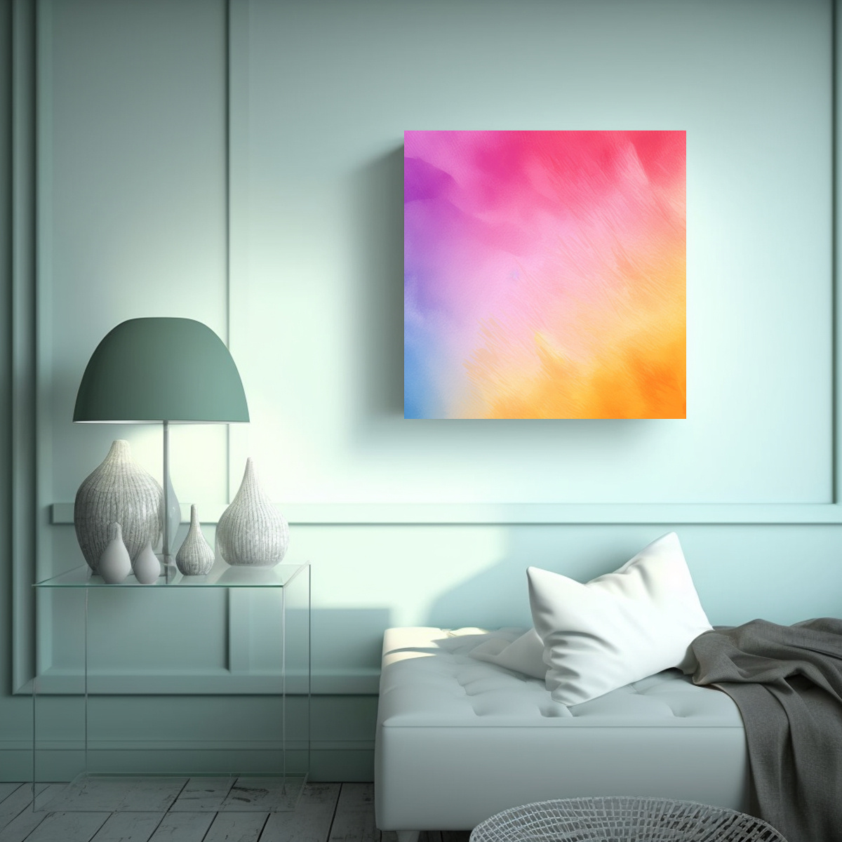 El cuadro decorativo vanguardia gradación acuarela es una pieza única que añadirá estilo y elegancia a tus paredes Su diseño exclusivo en colores coral, rosado claro, turquesa, lila, amarillo claro y dorado, crea un hermoso efecto de gradación similar a una pintura de acuarela Fabricado con tela de alta calidad y bastidores de madera, garantizamos la mejor calidad del mercado Decora tu hogar u oficina con este cuadro y transforma cualquier espacio en algo extraordinario