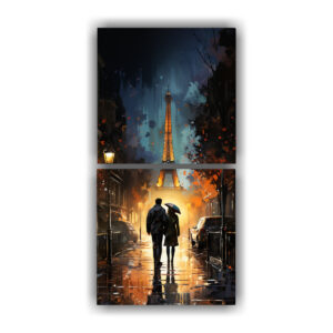 Decora tu hogar con la Pintura de Pareja Joven Caminando Frente a la Torre Eiffel de DecoCuadros Los colores dorado, beige, azul marino grisaceo, gris, plateado y lila resaltan en esta hermosa obra de arte Descubre diseños exclusivos de alta calidad y precios económicos en nuestra tienda online