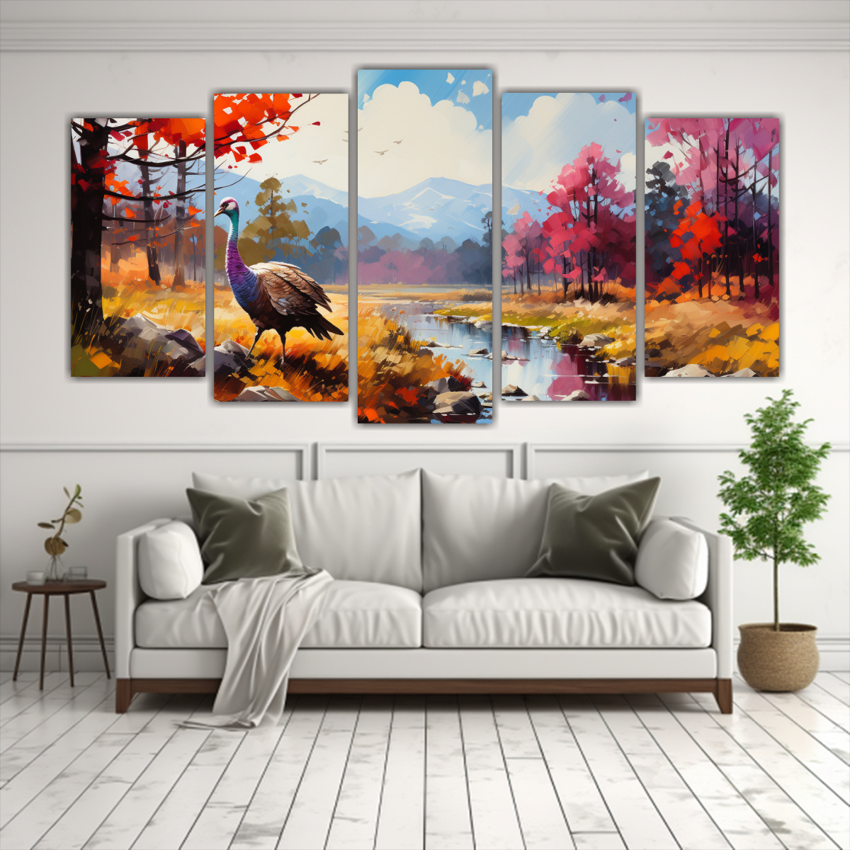 Este cuadro de Pavos Coloridos al Estilo Acuarela se vería espectacular en un ambiente moderno con muebles neutros para que los colores resalten Colócalo en la sala de estar sobre un sofá blanco para crear un punto focal vibrante y único