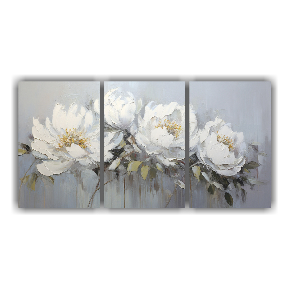 Pintura De Peonías Blancas En Tela Composición Dinámica
