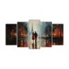 Pintura De Personas Caminando Bajo La Lluvia En Bastidor Decoración Con 5 Telas En Patrón Intenso Bonito.