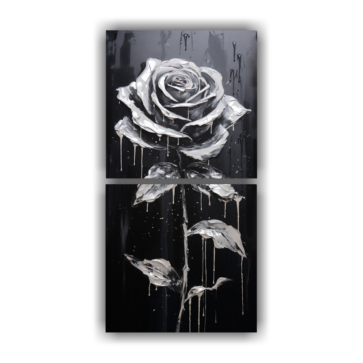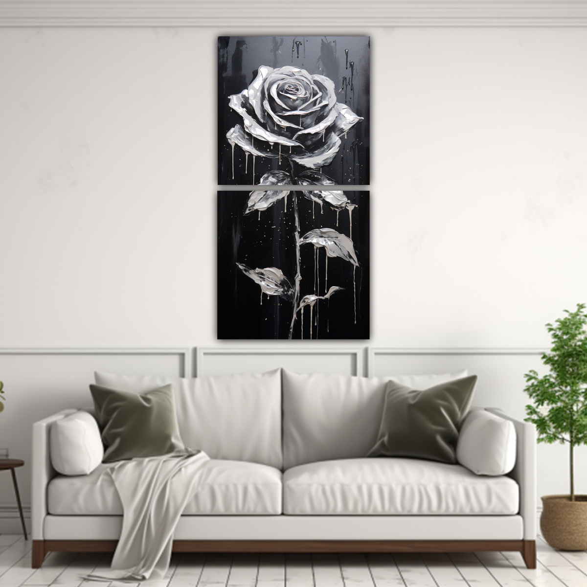 Pintura De Rosas Negras En Lienzo Estilo Temático: Diptico