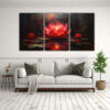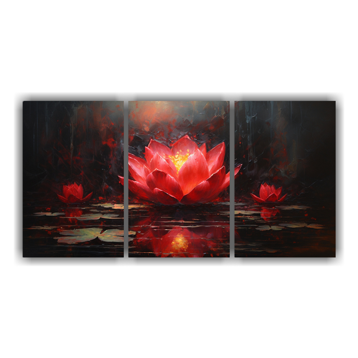 Este cuadro tríptico abstracto con loto negro es perfecto para decorar cualquier espacio en tu hogar Recomendamos colocarlo en el salón, sobre un sofá de color claro, para crear un contraste elegante y moderno También puedes combinarlo con cojines en tonos carmesí y gris para completar la decoración
