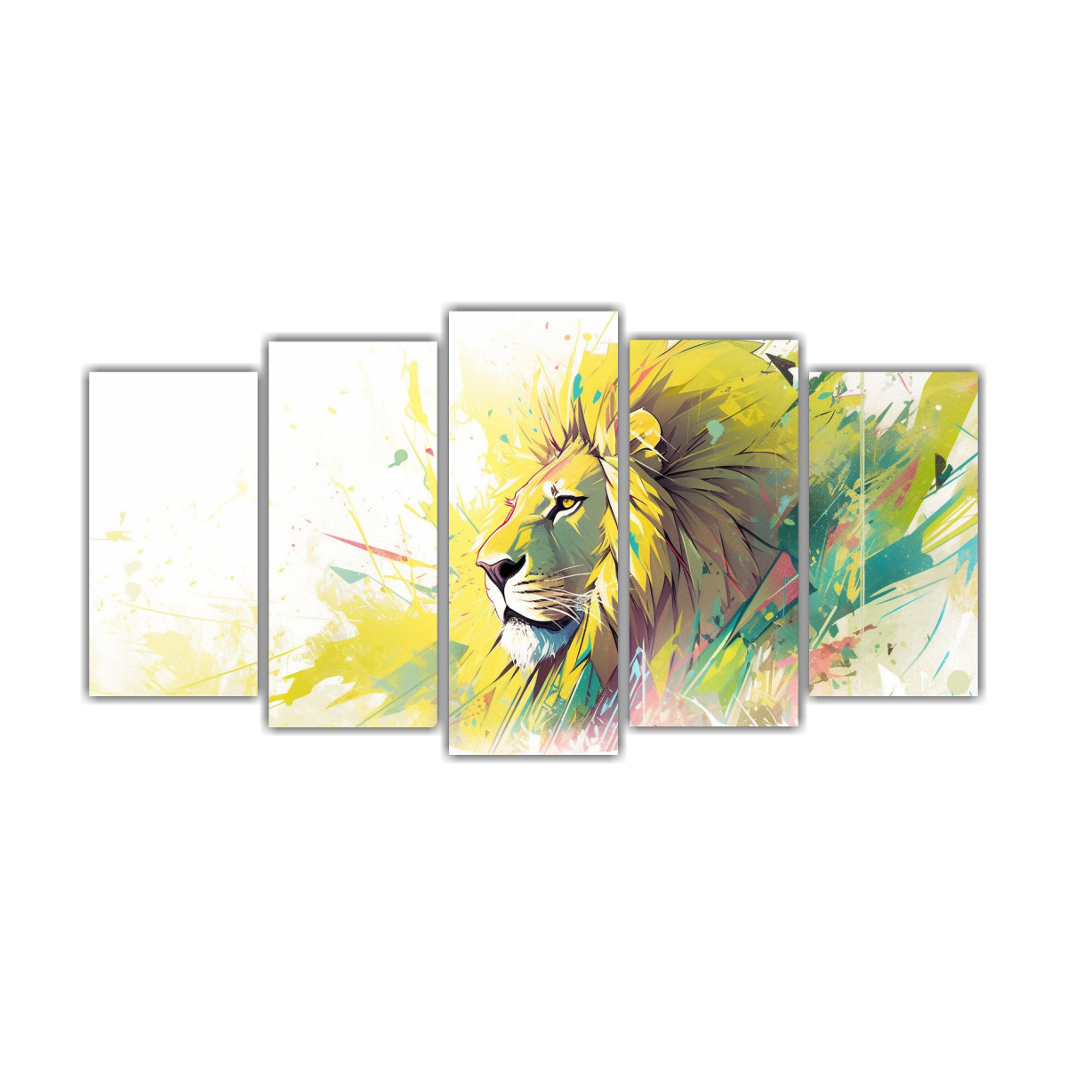 Pintura De Un León En Tonos Pastel Y Amarillo En Estilo Neo Pop Arte