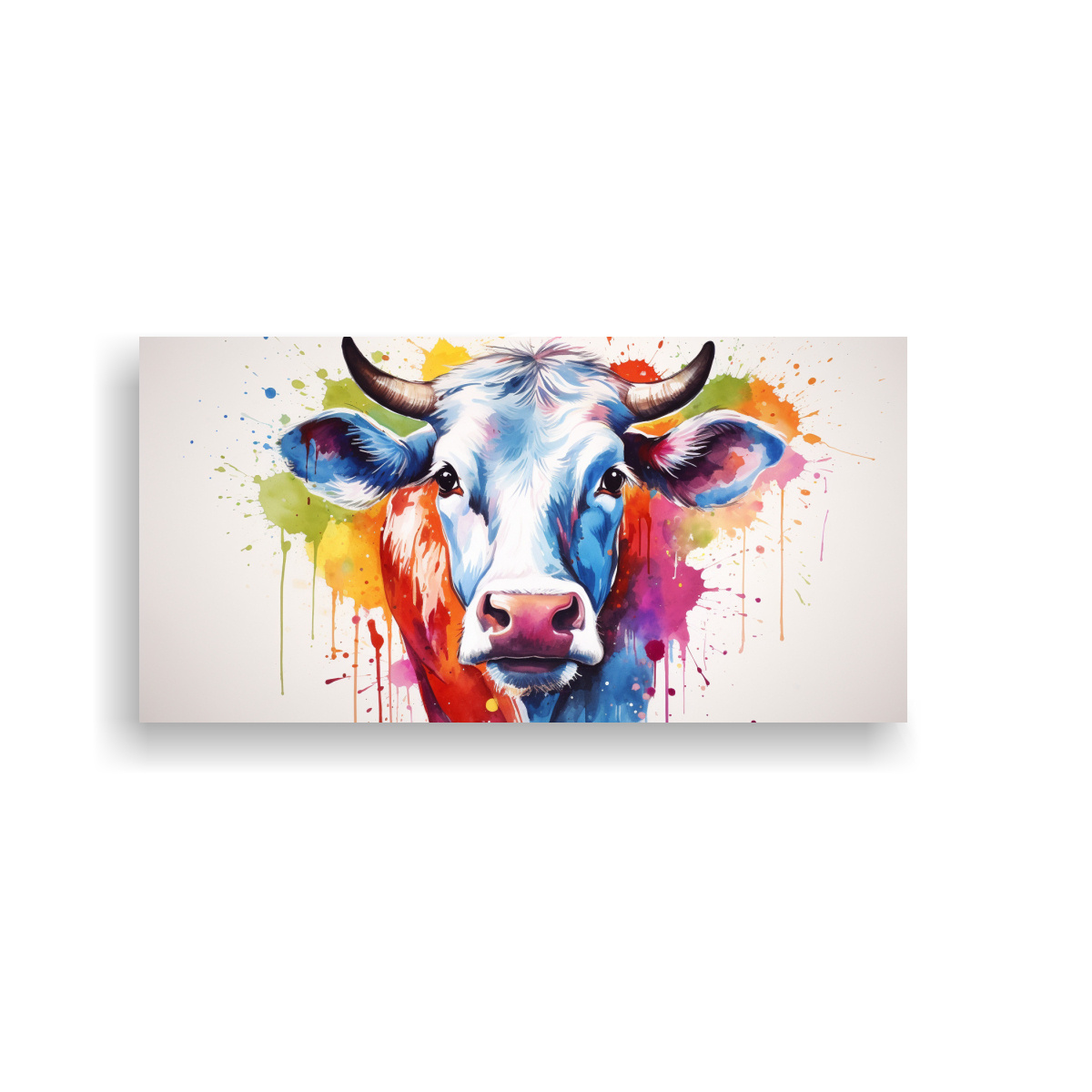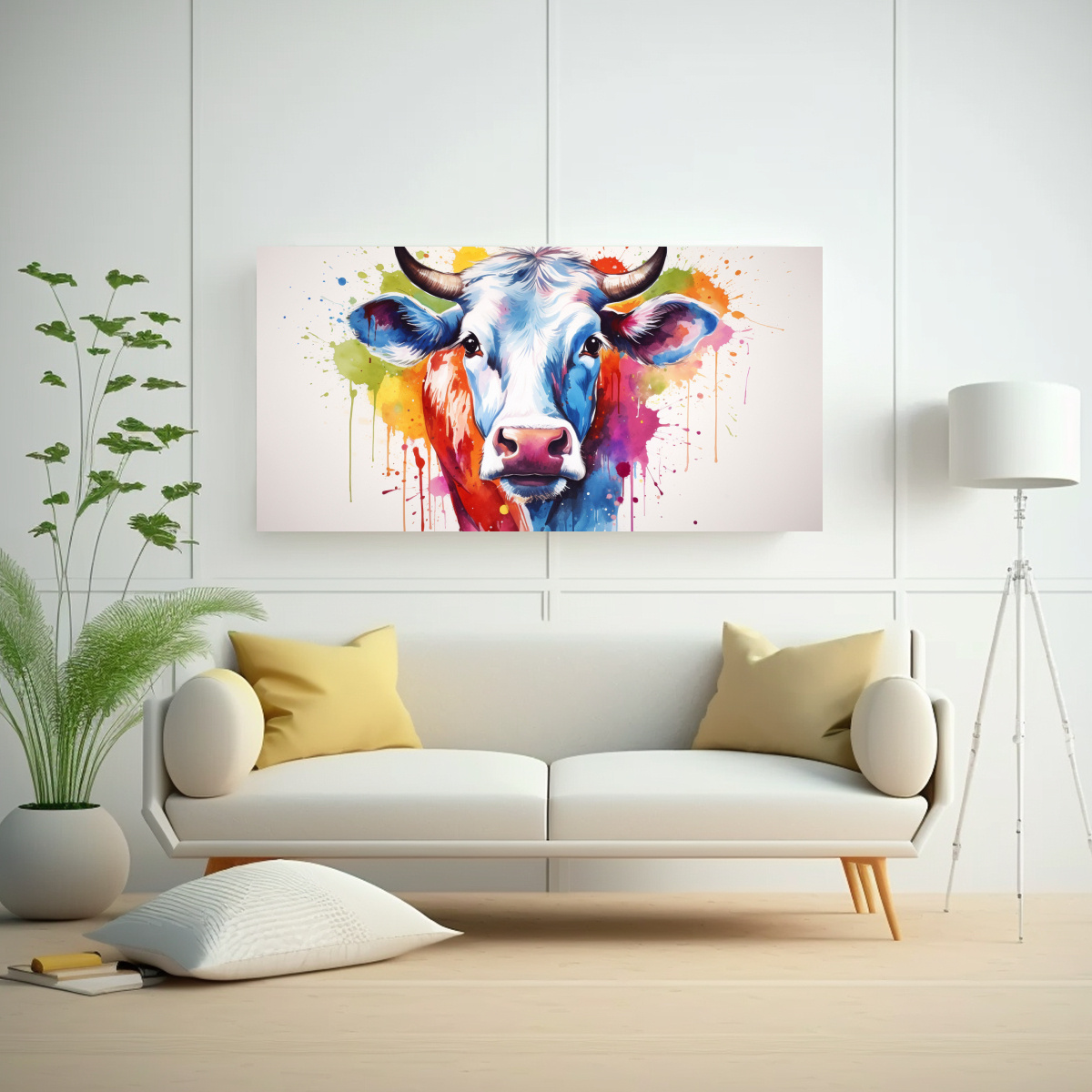 Coloca este cuadro de vaca colorida en acuarela en tu sala de estar para darle un toque divertido y único Combínalo con muebles en tonos neutros y elementos dorados para resaltar su belleza y crear un ambiente acogedor