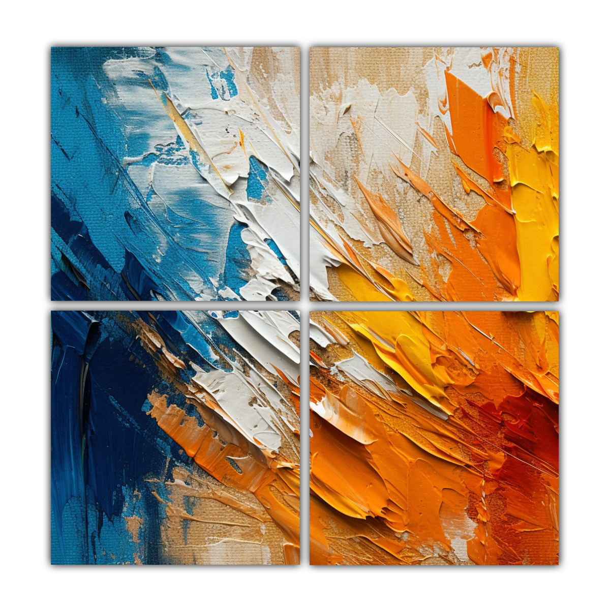 Pintura Decorativa: 4 Cuadro Hermoso Calma Con Textura De Lienzo Y Pinceladas.