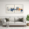 Pintura Decorativa Abstracta Con Naranja E índigo