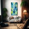Este cuadro de pintura decorativa abstracta en azul oscuro y colores brillantes sería ideal para colocarlo en el salón principal de tu hogar Su patrón moderno y colores vibrantes le darán vida y personalidad a la habitación Combínalo con muebles en tonos neutros como blanco o gris para resaltar aún más su belleza Este cuadro se convertirá en el centro de atención de tus invitados y te brindará un ambiente tranquilo y moderno a la vez