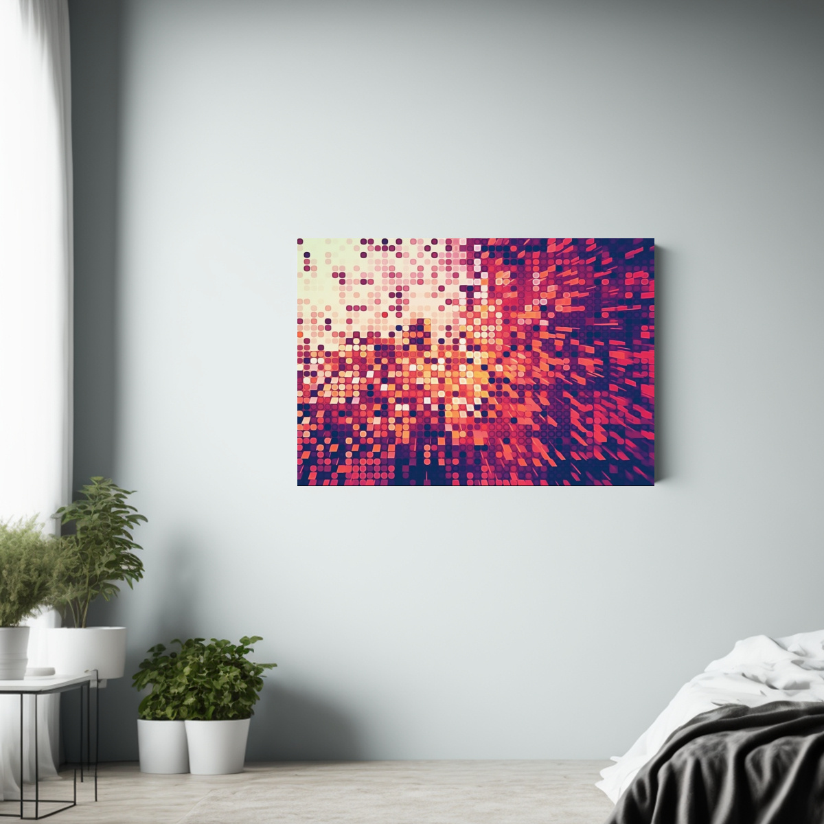 Este cuadro abstracto cuadrados puntos encajaría perfectamente en un salón de estilo moderno junto a muebles de líneas limpias y colores neutros También sería ideal para resaltar una pared de tonos suaves en un dormitorio contemporáneo