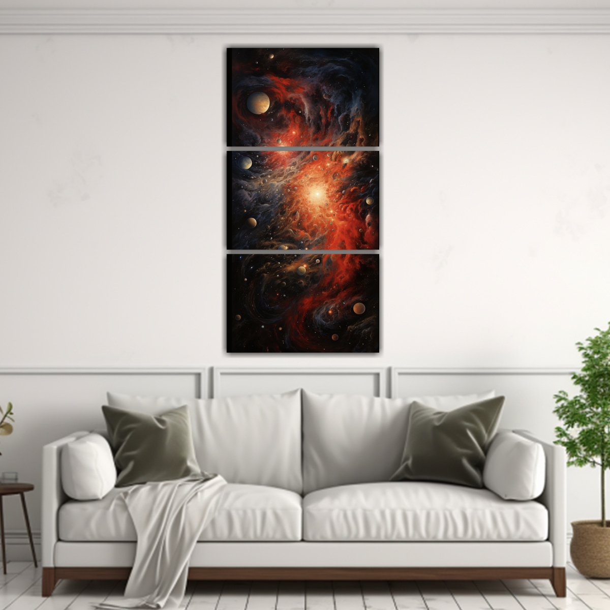 Este cuadro abstracto de colisión cósmica es perfecto para decorar tu sala de estar o tu estudio Combínalo con muebles en tonos neutros como gris o blanco, y agrega algunos cojines en colores carmesí y dorado para resaltar ¡Crea un ambiente moderno y elegante con este cuadro de DecoCuadros!