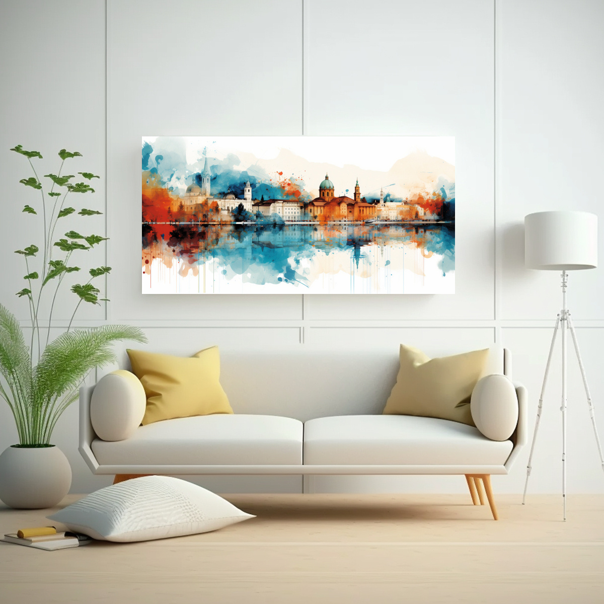 Este cuadro abstracto Salzburg música de Mozart es ideal para decorar tu sala de estar o tu estudio Combínalo con muebles de colores neutros como el blanco o el gris, y agrega algunos cojines o cortinas en tonos turquesa o coral para crear un ambiente armonioso y elegante