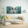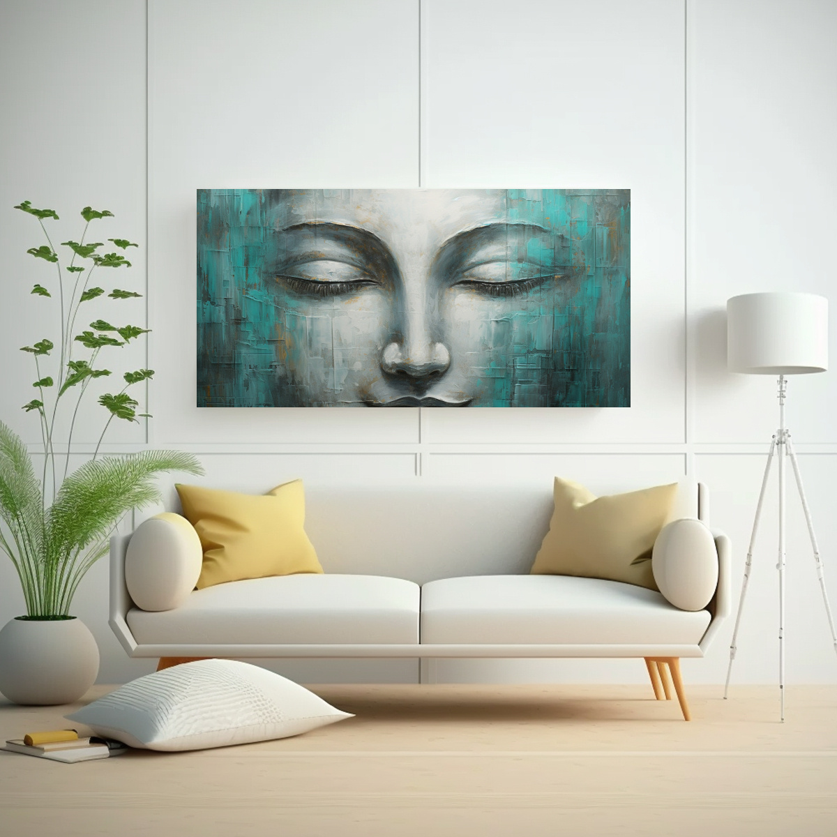 Coloca este cuadro en tu sala de estar o en tu espacio de meditación para crear un ambiente zen y equilibrado Combínalo con cojines en tonos turquesa y plateado, y agrega plantas en macetas de cerámica gris para un toque de naturaleza También puedes utilizar este cuadro como punto focal en tu dormitorio, combinándolo con ropa de cama en tonos neutros y muebles de madera clara ¡Deja que la serenidad del rostro de Buda llene tu hogar!