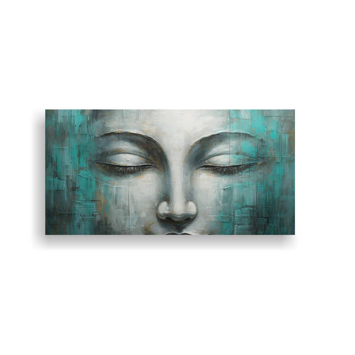 Pintura Decorativa Abstracta De óleo Con Rostro De Buda En Estilo Plateado Y Turquesa