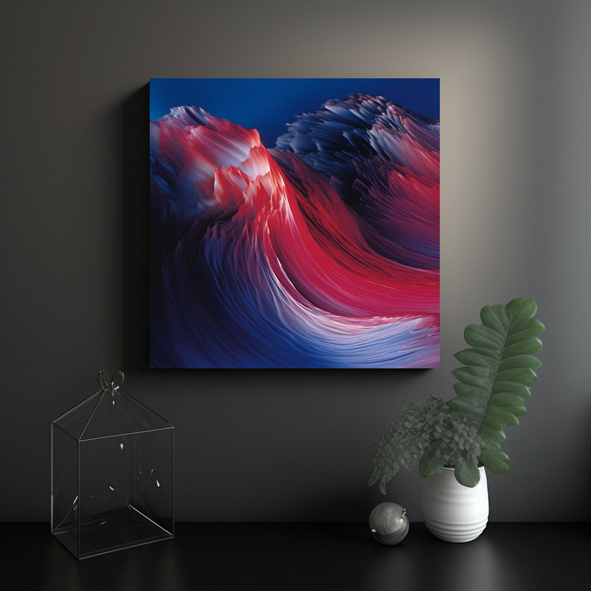 Pintura Decorativa Abstracta De Ondas En Rojo Y Azul Luminoso