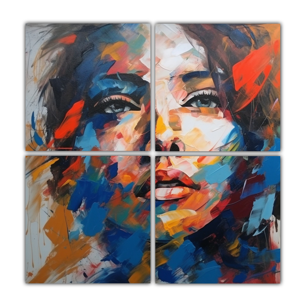 Pintura Decorativa Abstracta De Retrato Intenso 4 Lienzos