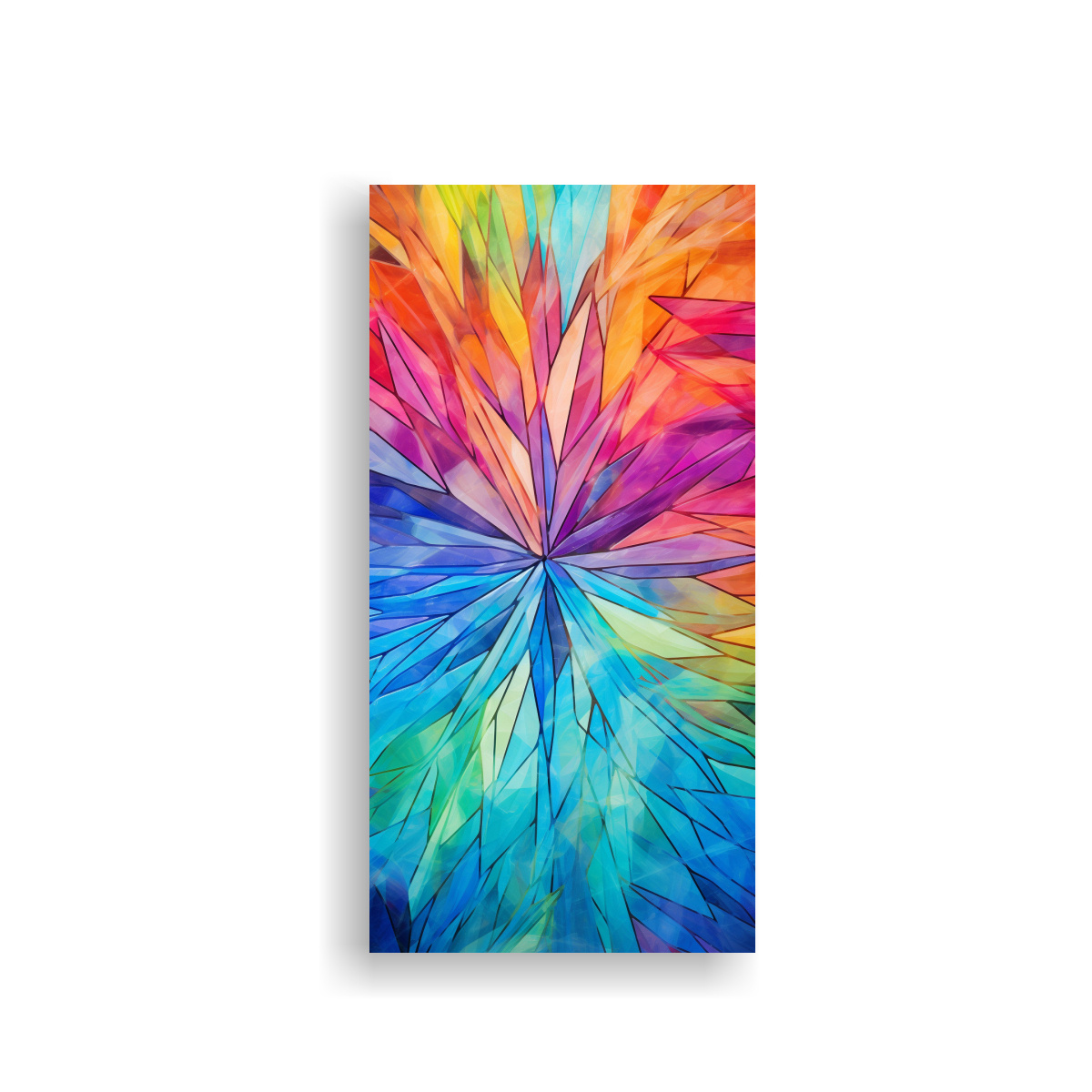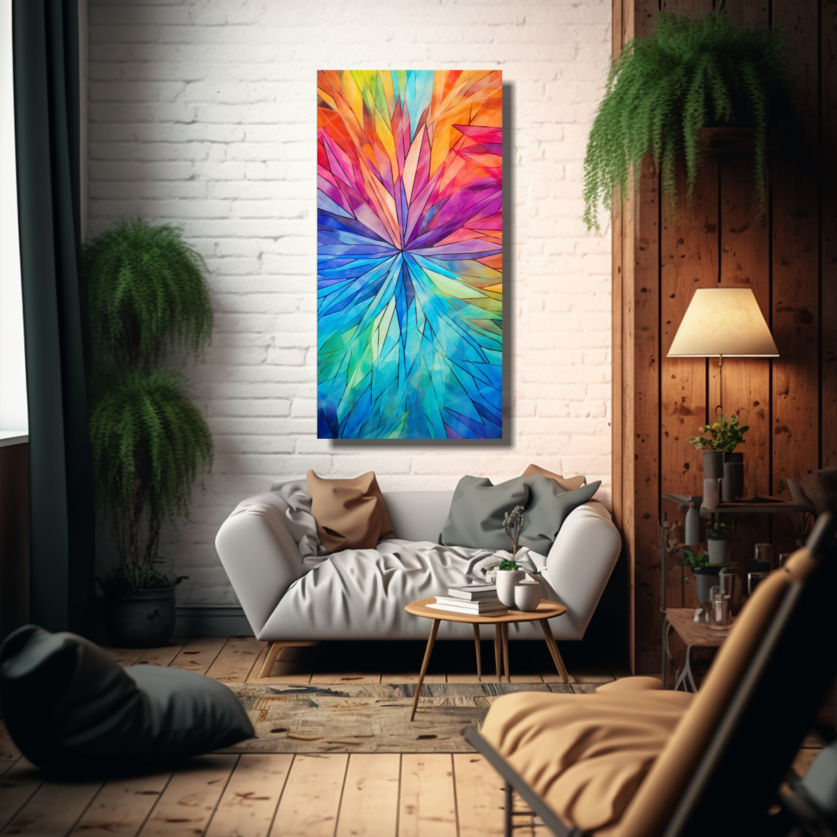 Este cuadro abstracto Elegancia en tonos kaleidoscópicos se verá magnífico en un salón moderno o una habitación con una decoración contemporánea Colócalo en una pared de tonos neutros para que los colores vibrantes del cuadro resalten aún más También puedes combinarlo con acentos en coral, verde azulado y turquesa para crear una estética armoniosa en el espacio
