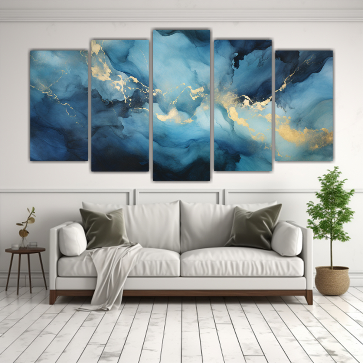 DecoCuadros te ofrece este cuadro abstracto en cluster pequeño con colores verde azulado, plateado, azul marino grisaceo, gris, turquesa y menta Impreso en tela de alta calidad con bastidores de madera Envío gratis en Santiago y envíos express a regiones