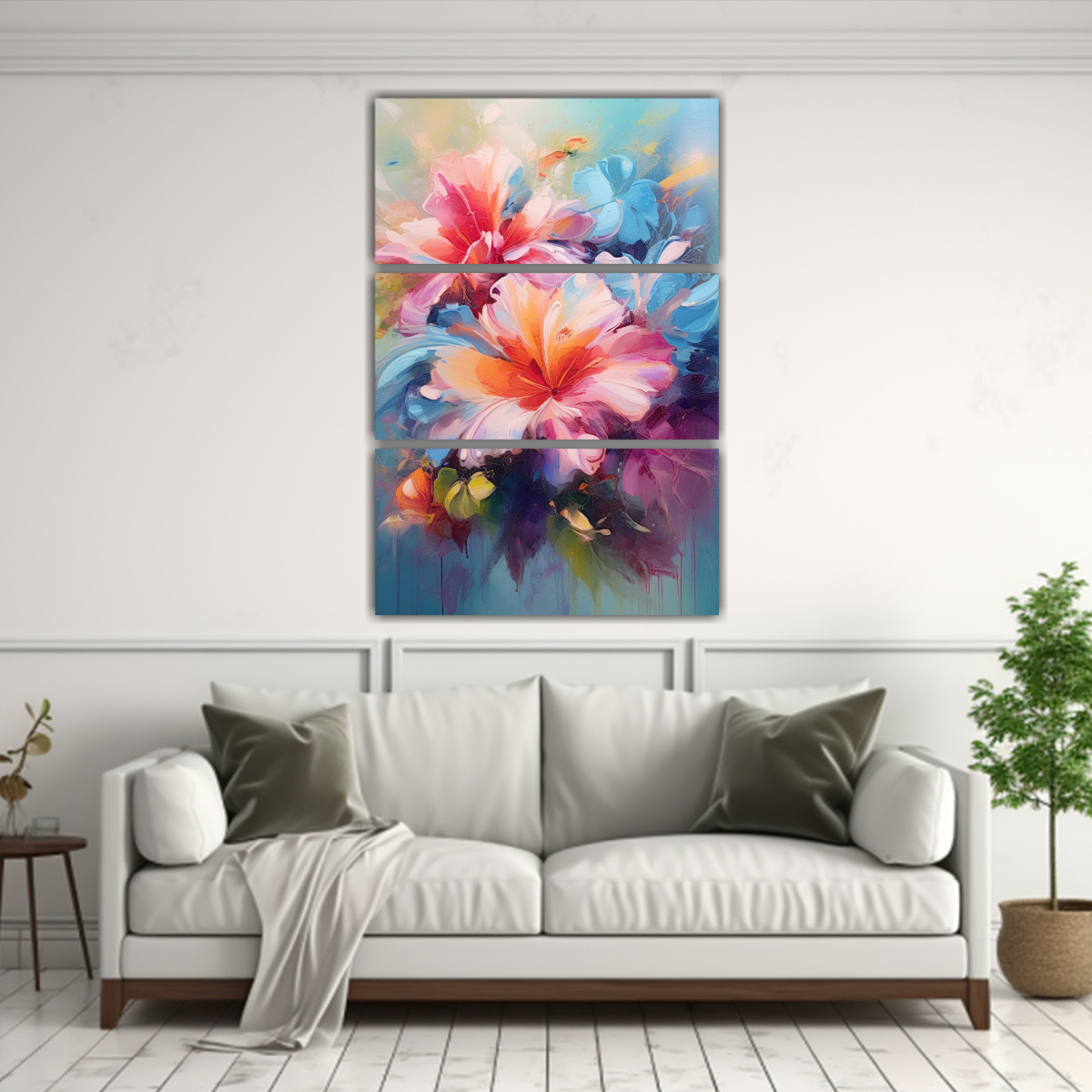 DecoCuadros te ofrece un set de 3 lienzos decorativos con una pintura abstracta floral en estilo Estilo óleo Los colores incluidos son azul marino grisaceo, plateado, gris, carmesí, morado y turquesa Nuestros cuadros están impresos en tela de alta calidad y cuentan con bastidores de madera, lo que garantiza su durabilidad y resistencia Además, ofrecemos los mejores precios del mercado y entregas rápidas y gratuitas en Santiago También realizamos envíos express a regiones