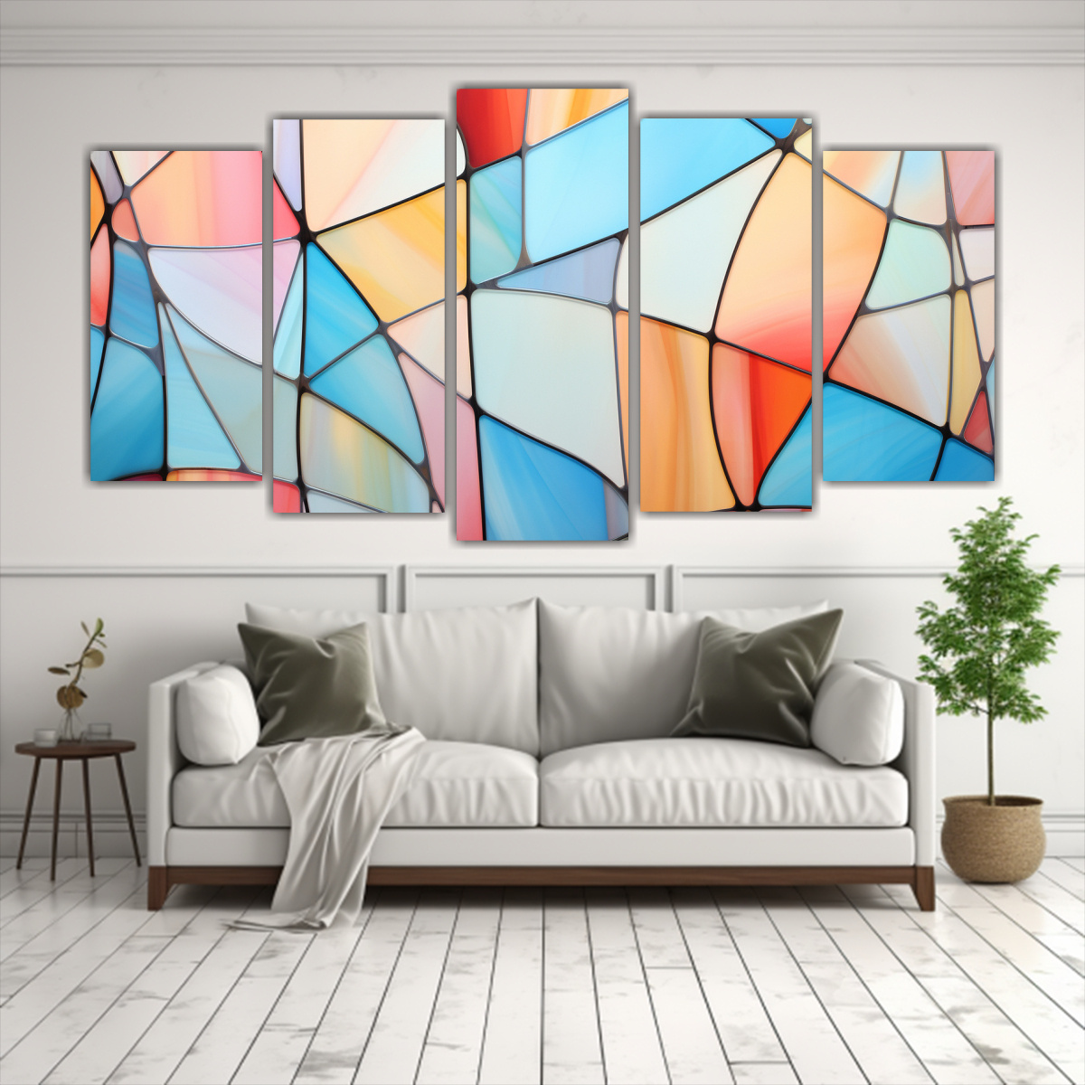 Este cuadro abstracto estilo vitral es ideal para decorar tu sala de estar o tu dormitorio Combínalo con muebles en tonos neutros como el blanco o el gris para resaltar su belleza y crear un ambiente elegante También puedes colocarlo en un pasillo o recibidor para darle un toque de color a tus espacios ¡Atrévete a darle vida a tus paredes con esta obra de arte única!