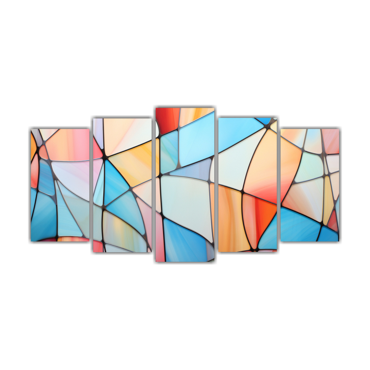 Pintura Decorativa Abstracta Estilo Vitral En Colores Políptico Artesanal