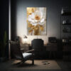 Este cuadro abstracto floral cautivador sería perfecto para colocar en el salón o en el dormitorio Combínalo con muebles en tonos neutros como beige o gris, y agrega algunos cojines en tonos amarillo claro y azul marino De esta manera, crearás una atmósfera armoniosa y elegante en tu hogar