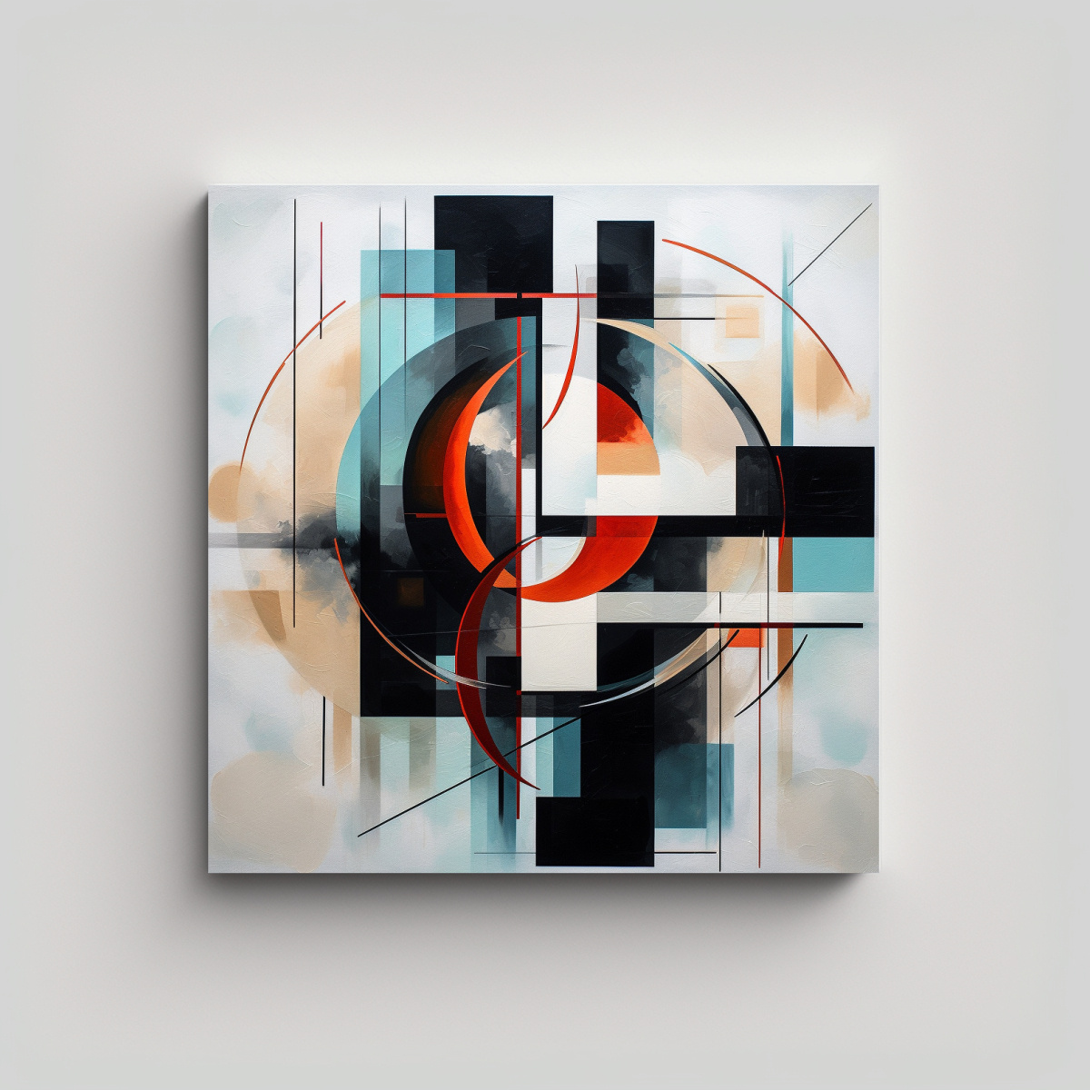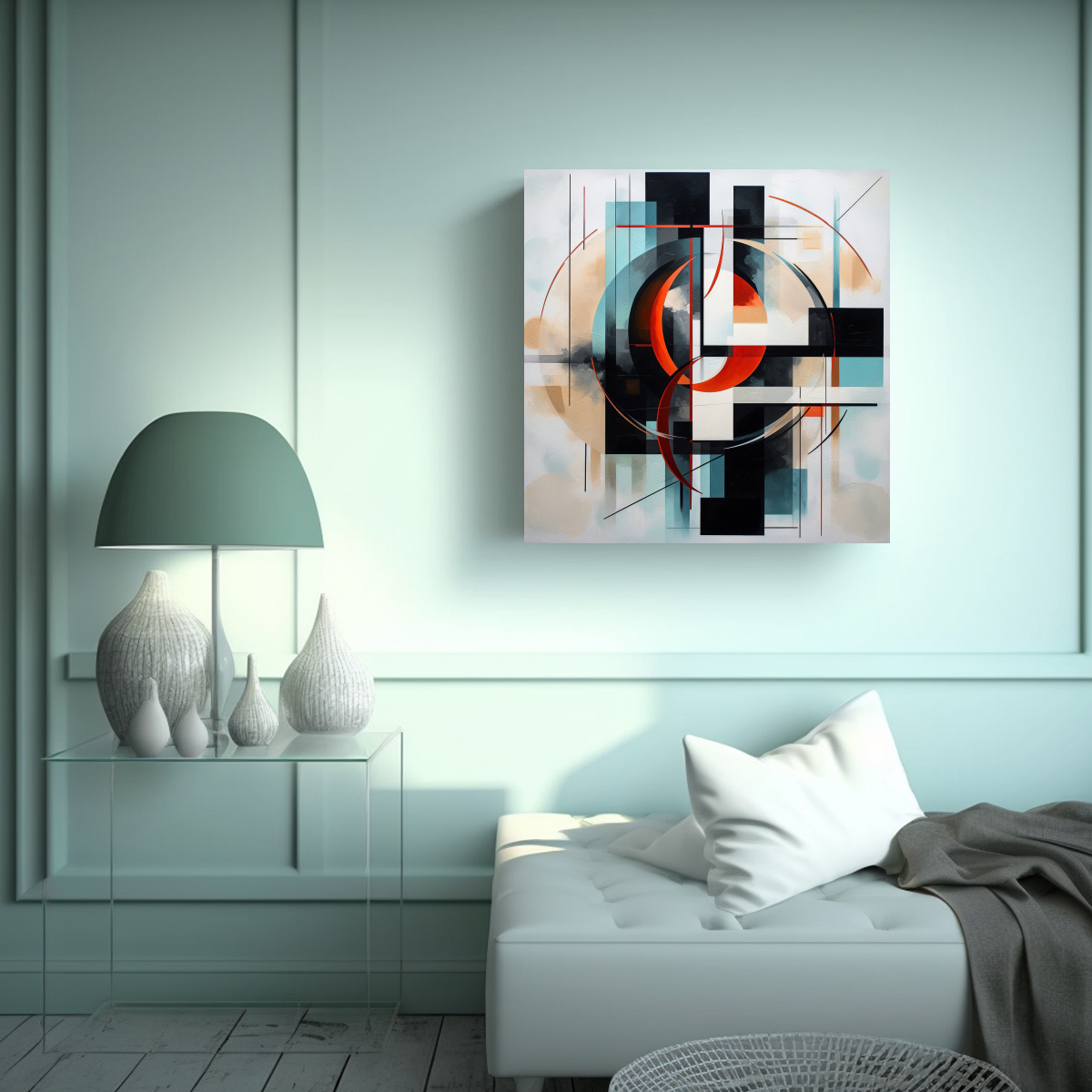Este cuadro abstracto geométrico en Canva es perfecto para decorar tu sala de estar o comedor Combínalo con muebles en tonos neutros como gris o blanco, y complementa con accesorios en los colores del cuadro para lograr una armonía visual ¡Crea un ambiente moderno y vanguardista!