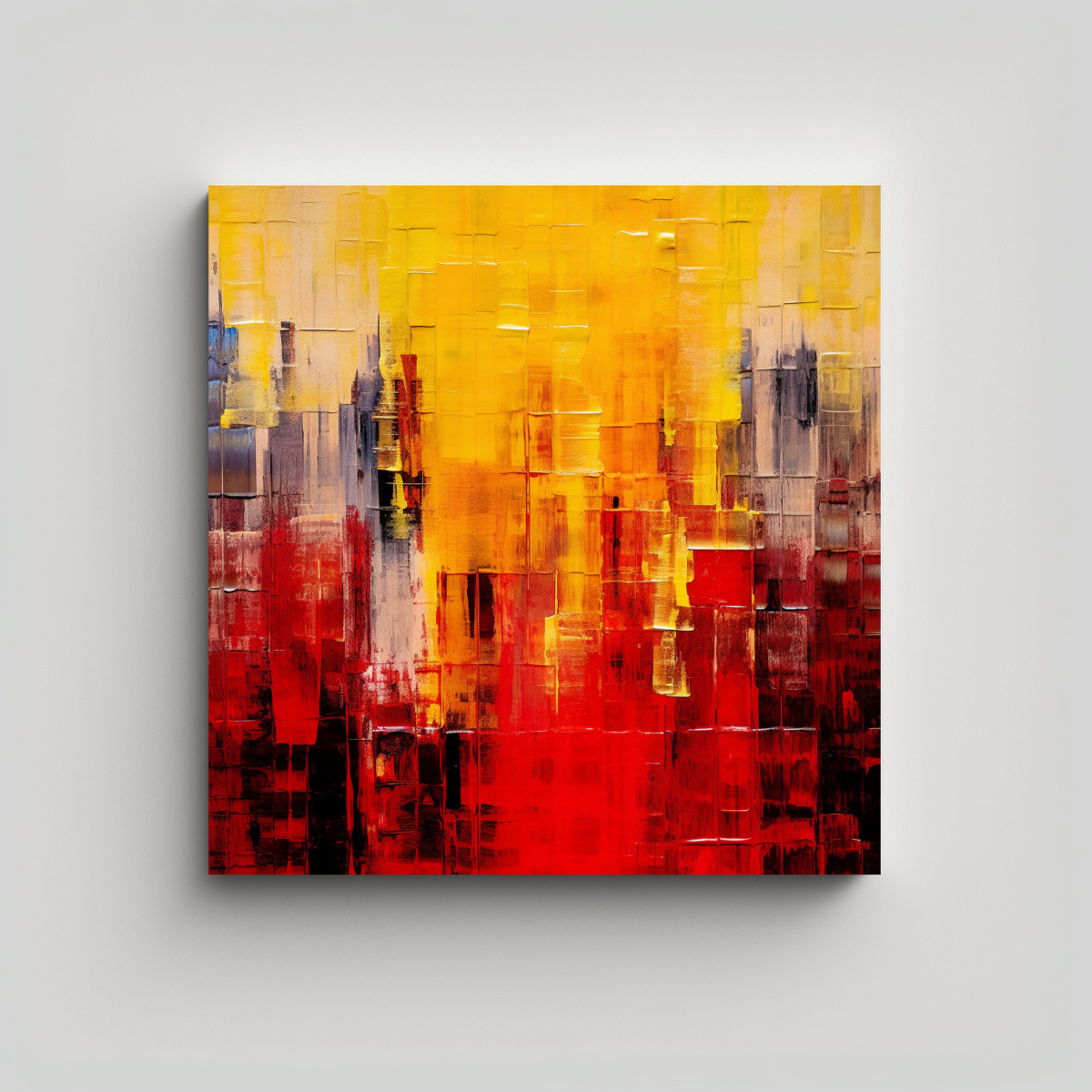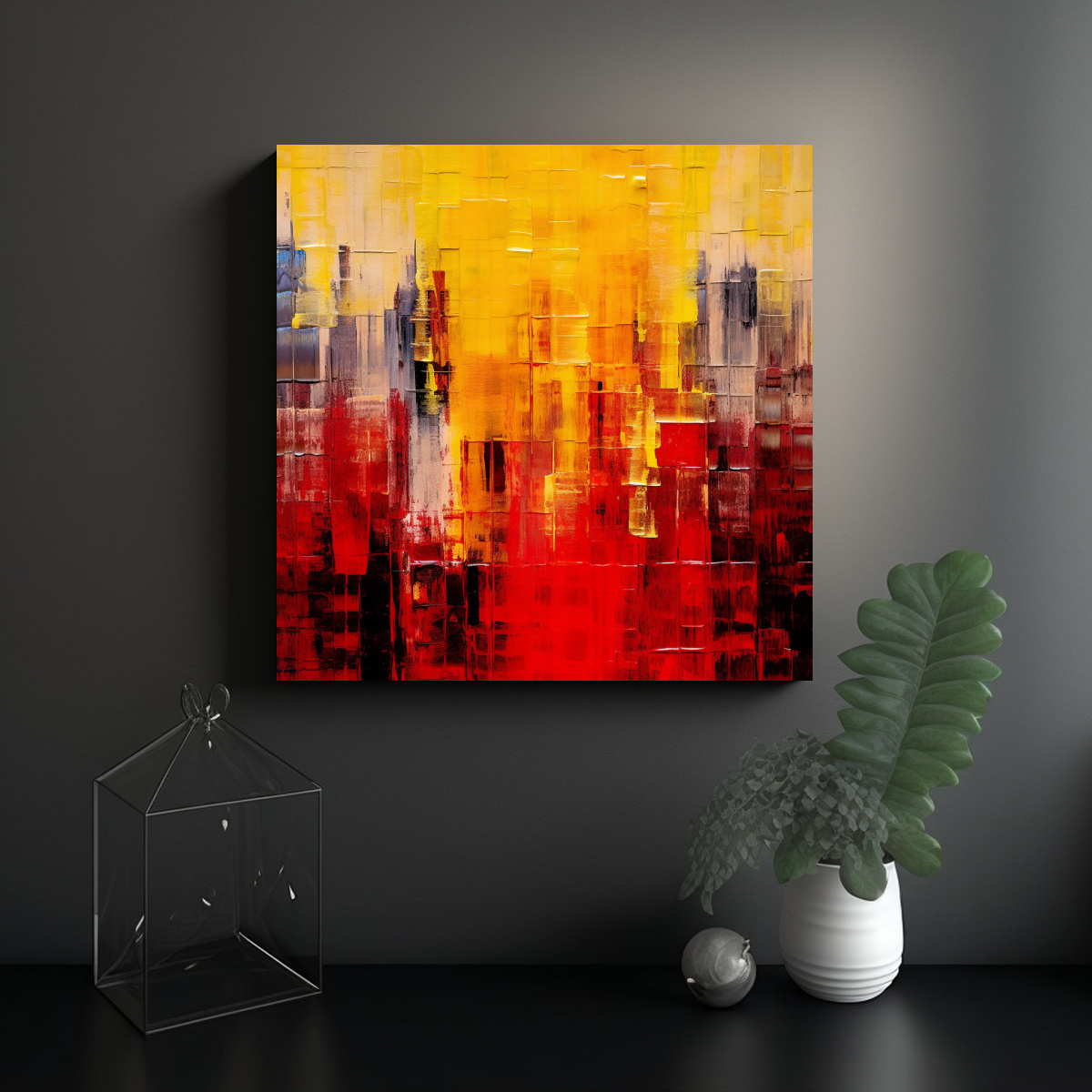 Coloca este cuadro en el centro de tu sala de estar para crear un punto focal único Combínalo con muebles en tonos neutros para resaltar su vibrante paleta de colores y darle un toque de modernidad a tu espacio