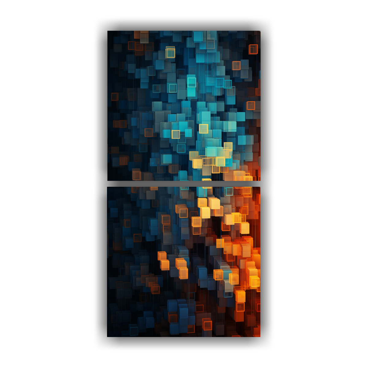 DecoCuadros te ofrece el cuadro decorativo abstracto Diptico Luminosidad Moderna Con una combinación de colores vibrantes como el Coral, Negro, Menta, Chocolate, Verde Azulado, Amarillo Claro, Azul Marino grisáceo y Gris, este cuadro iluminará cualquier espacio de tu hogar Impreso en tela de alta calidad con bastidores de madera, garantizamos la mejor calidad del mercado a precios económicos Además, ofrecemos entregas rápidas y gratuitas en Santiago y envíos express a regiones