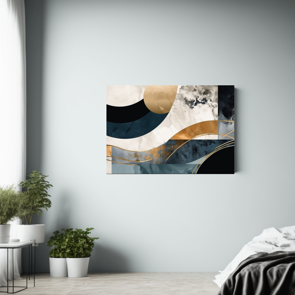 Coloca este cuadro en el centro de tu sala de estar para crear un punto focal moderno Combínalo con muebles en tonos neutros como beige o grises para resaltar su diseño abstracto y darle un toque de sofisticación a tu espacio