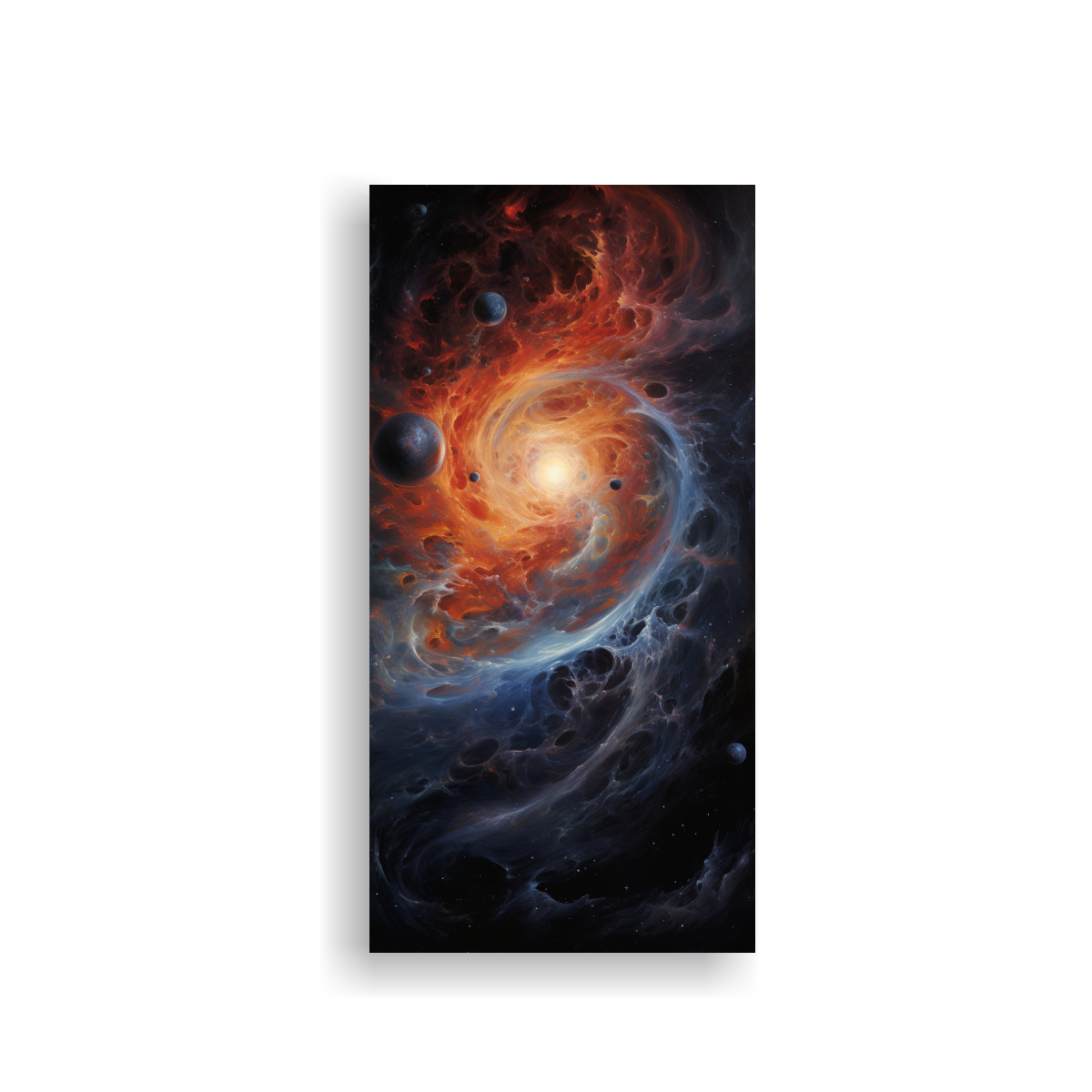 DecoCuadros presenta el cuadro abstracto multicolor de gravedad de agujeros negros Conéctate con el cosmos a través de esta pintura decorativa que combina los colores coral, negro, dorado, gris, azul marino grisaceo y plateado Impreso en tela de alta calidad y montado en bastidor de madera, este cuadro exclusivo añadirá un toque de misterio y elegancia a tu espacio