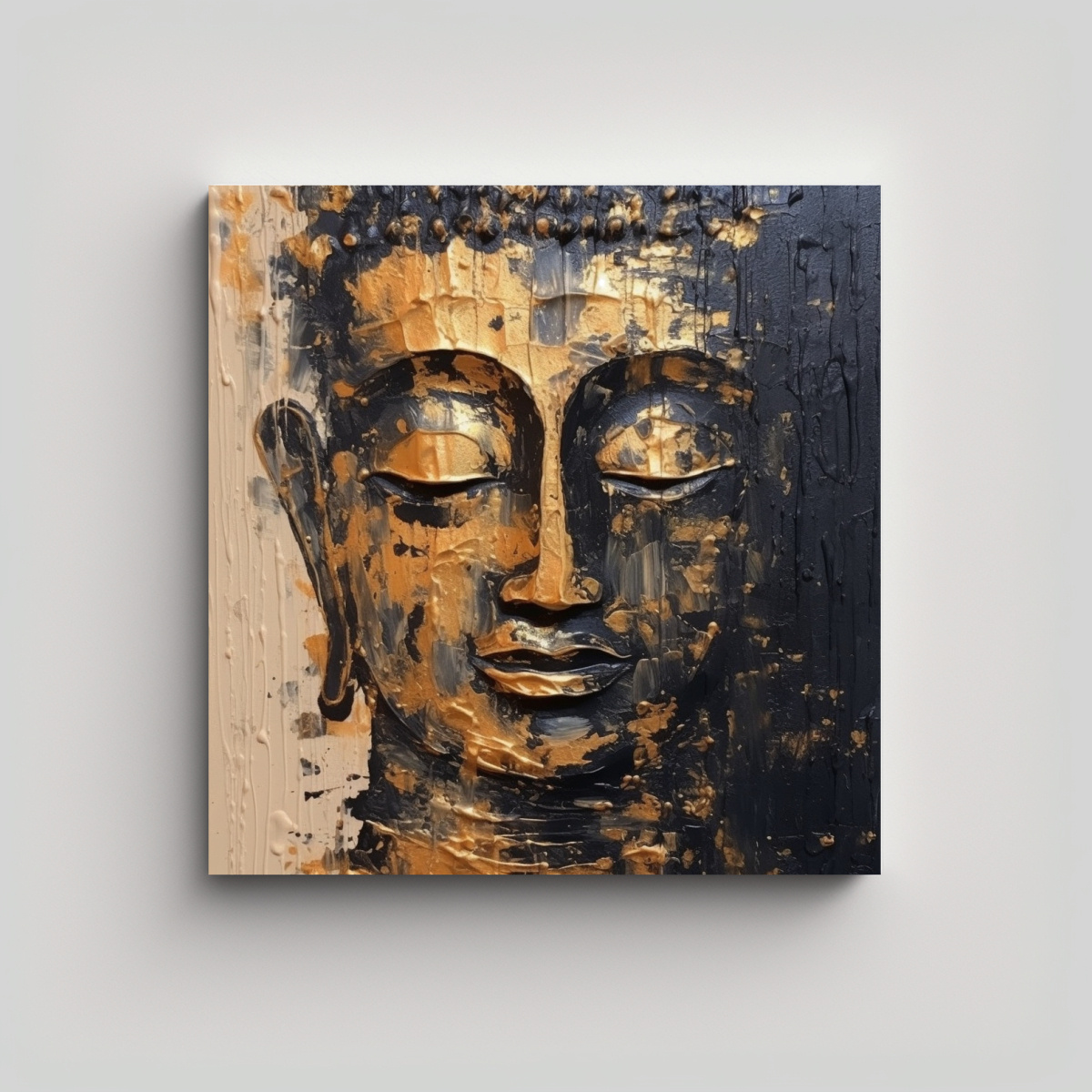 Pintura Decorativa Arte Creativa Abstracta Llamativa De Buda Negro Y Dorado