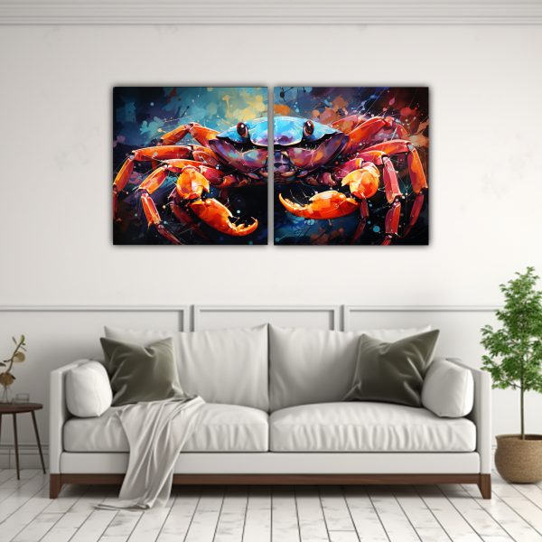 Pintura Decorativa: Cangrejo En Colores Iridiscentes Y Maíz Neo Pop Art