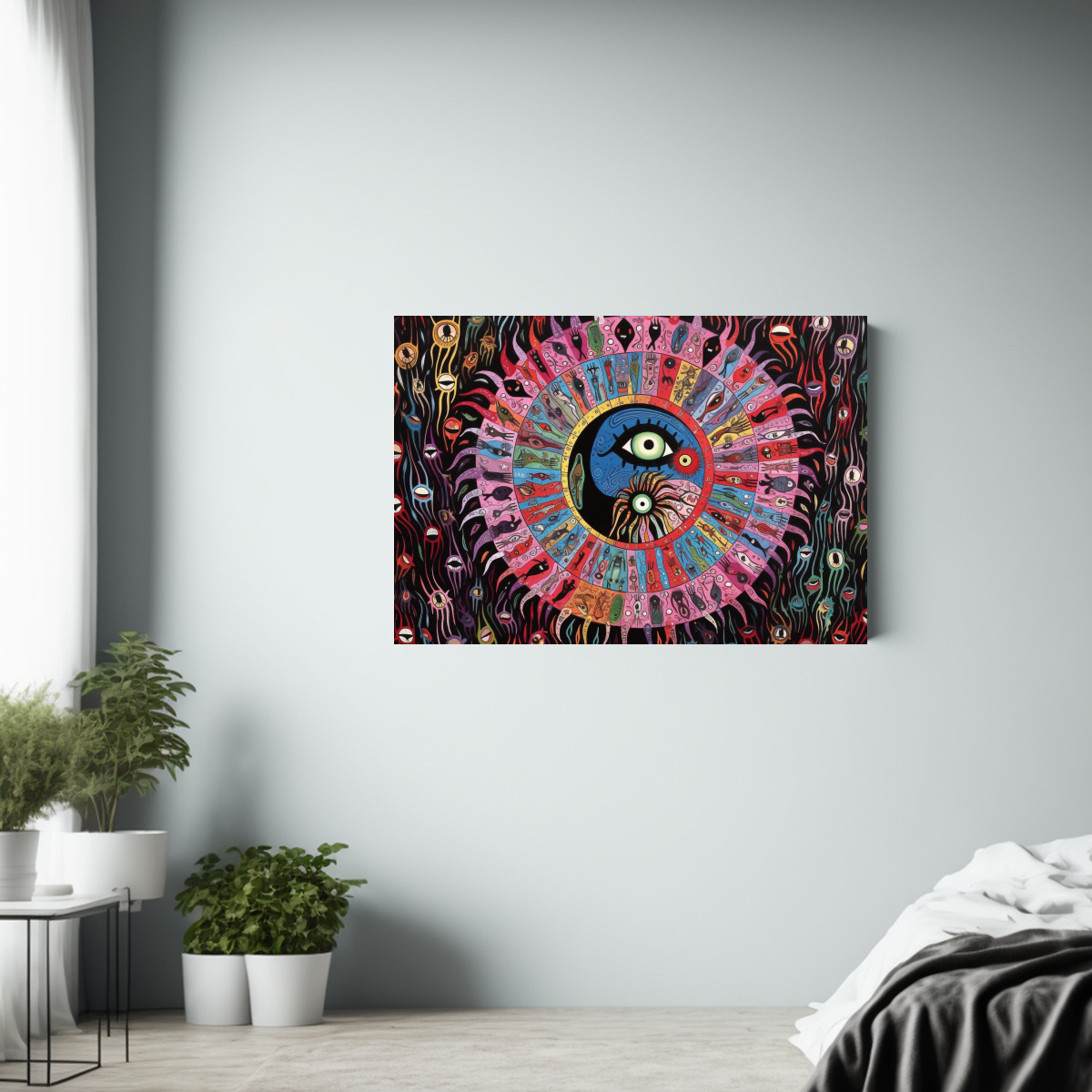 Coloca este cuadro en el centro de tu sala para crear un punto focal impactante Combina los colores con cojines en tonos neutros para equilibrar la paleta y añadir calidez a la habitación