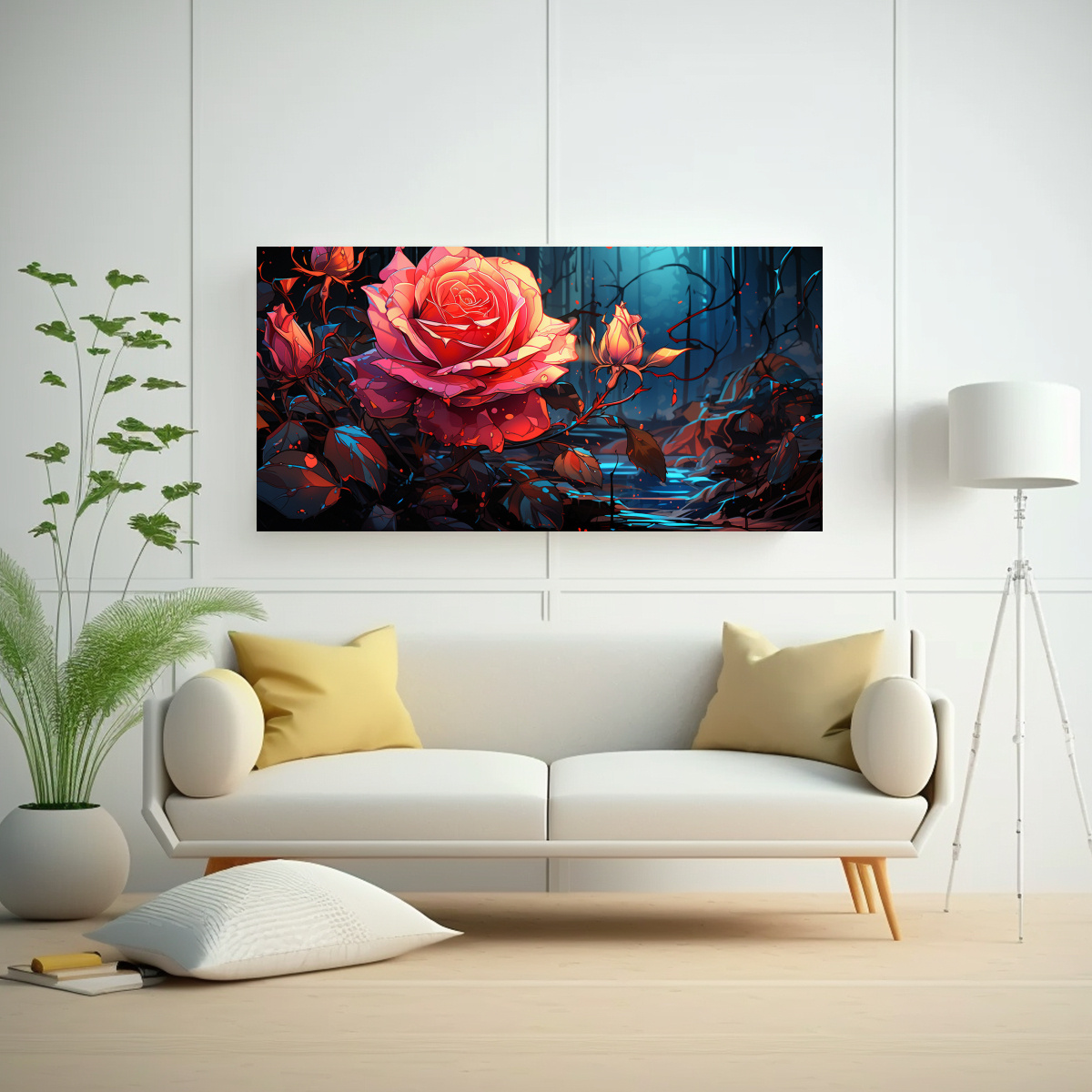 Pintura Decorativa Con Colores Vibrantes De Un Dibujo De Una Rosa Con Gotas Goteando En Ella
