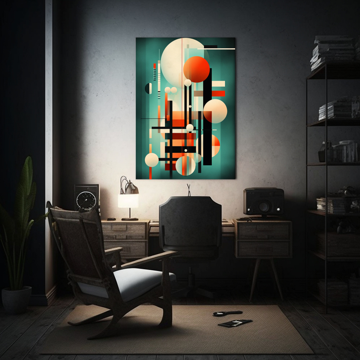 Decora tus espacios con el cuadro Canva Tema Intenso de DecoCuadros Composición gráfica de formas geométricas en tonos plateado, azul marino grisaceo, turquesa, rojo, menta, coral, chocolate y verde azulado Impreso en tela de alta calidad con bastidores de madera Diseño exclusivo de nuestra tienda Entregas rápidas y gratis en Santiago Envíos a regiones express
