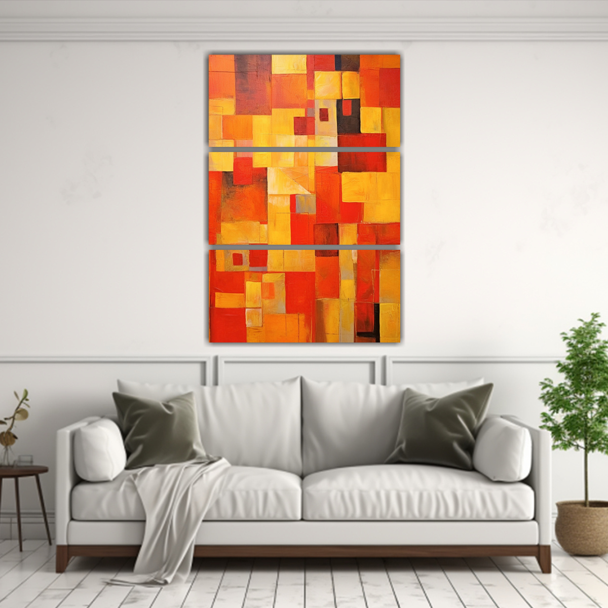 DecoCuadros te ofrece este impactante cuadro decorativo con un diseño geométrico en tonos dorado, mostaza, azul marino grisáceo, carmesí, coral y amarillo claro El bastidor de madera y la impresión en tela de alta calidad garantizan una excelente durabilidad Aprovecha nuestra oferta y adquiere un cuadro con diseño exclusivo