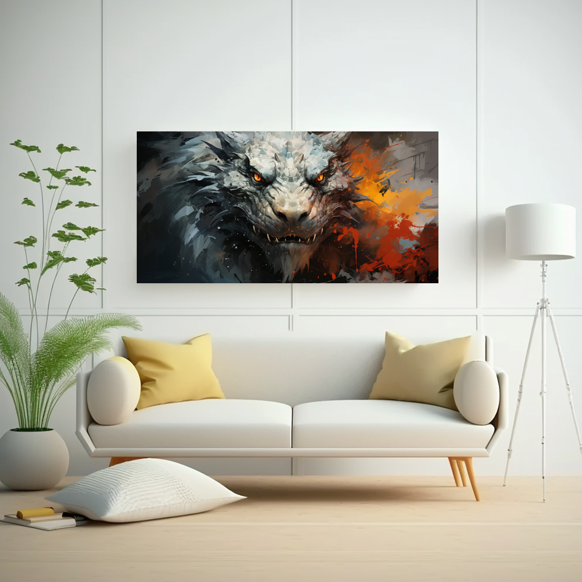 Pintura Decorativa Con Dragón En Blanco Y Negro, Estilo Vanguardia Neonoir