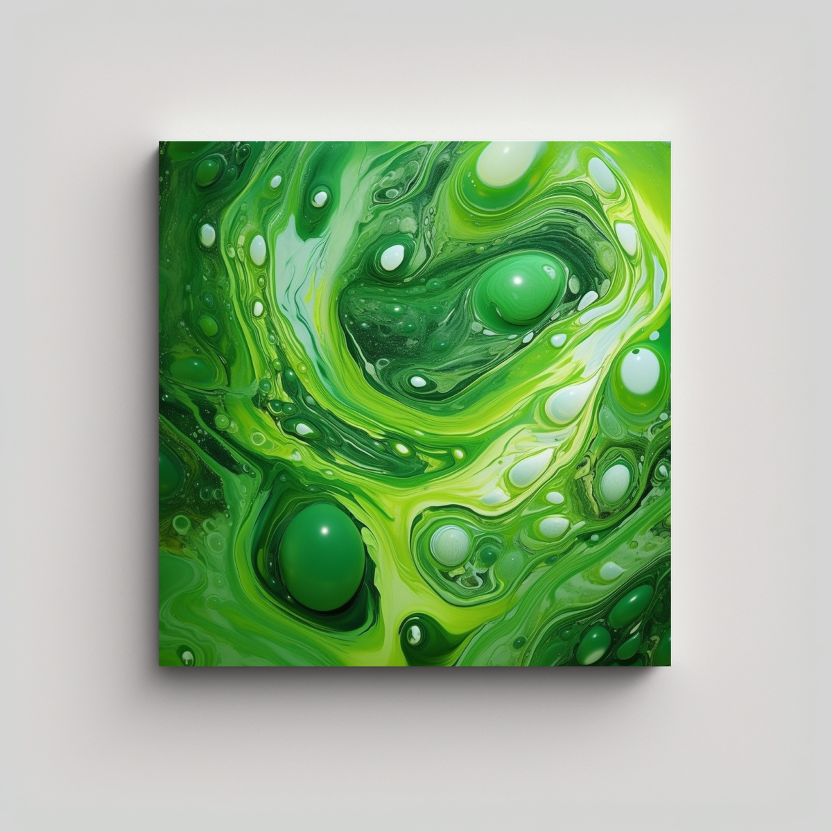 Pintura Decorativa Con Textura Líquida Verde Brillante En Bastidor Vanguardia