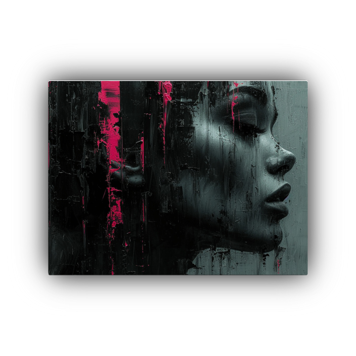 Este cuadro se vería perfecto en un ambiente contemporáneo, como la sala de estar o el estudio, combinando con muebles en tonos neutros para resaltar su elegancia y modernidad