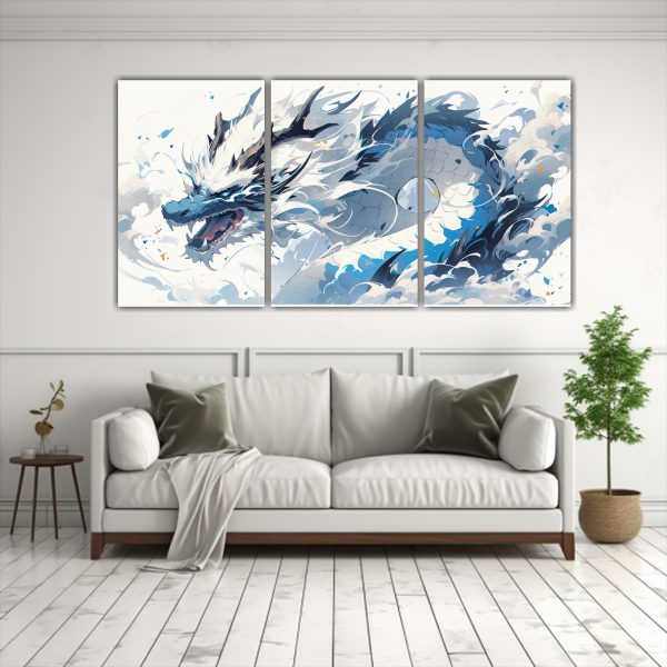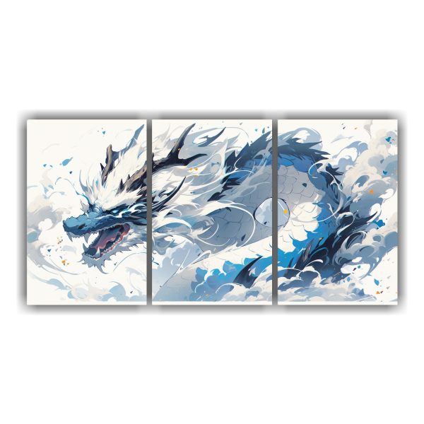 Pintura Decorativa: Cuadro única De Un Dragón Blanco Y Azul, Ambiente Neonoir